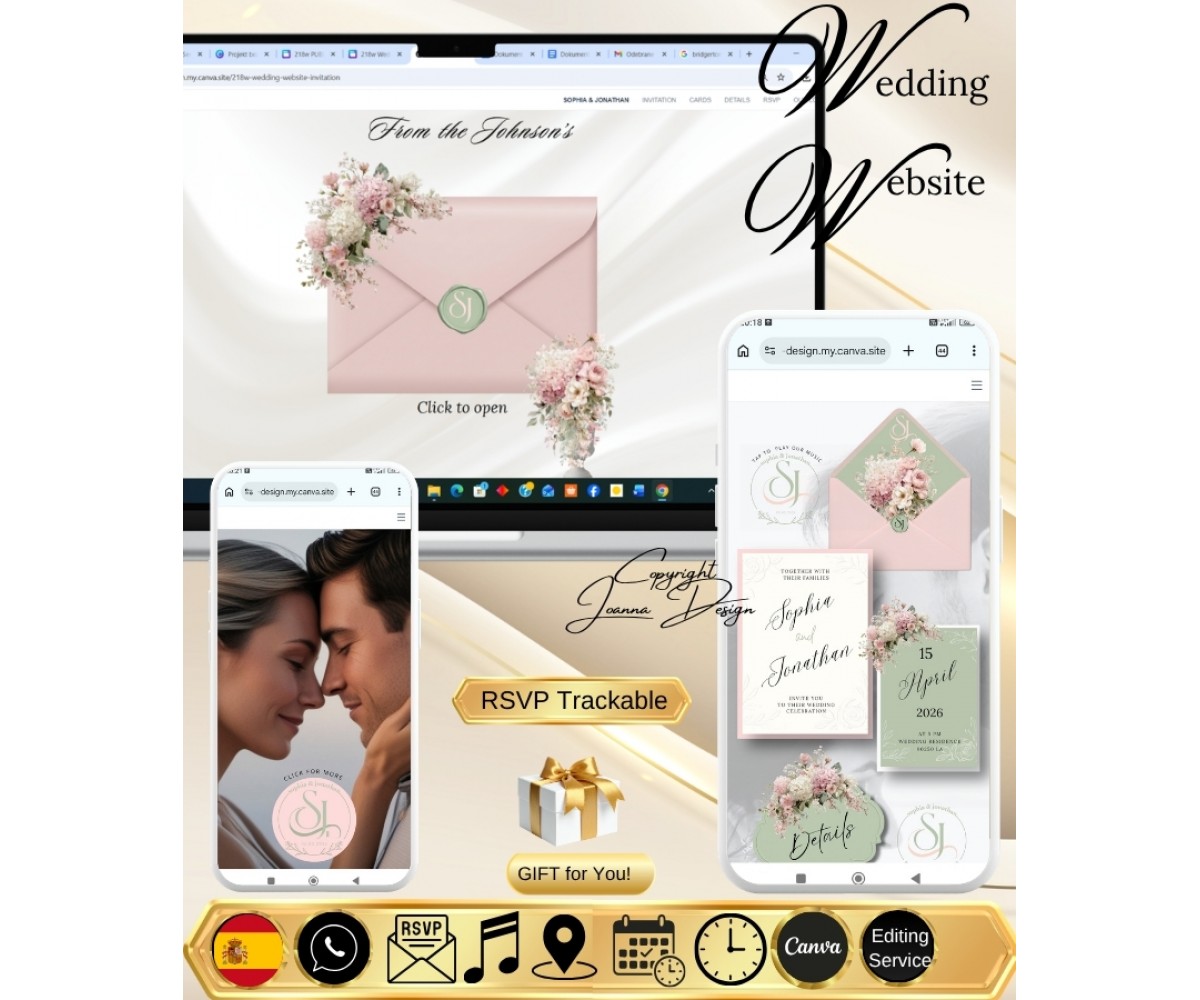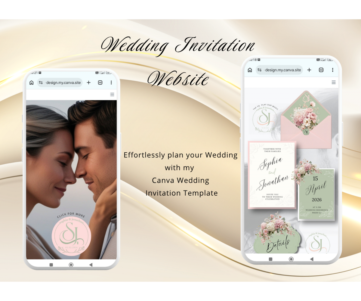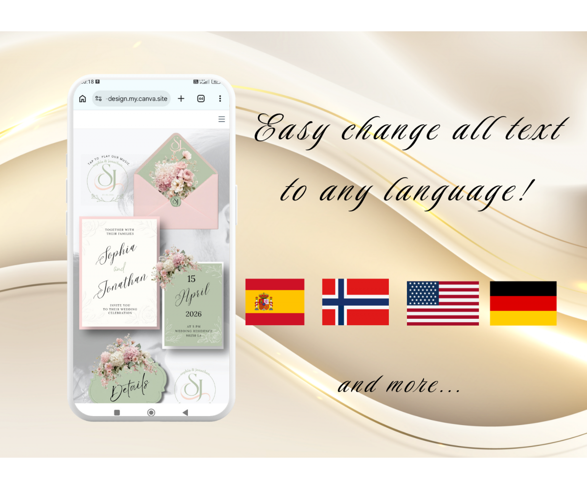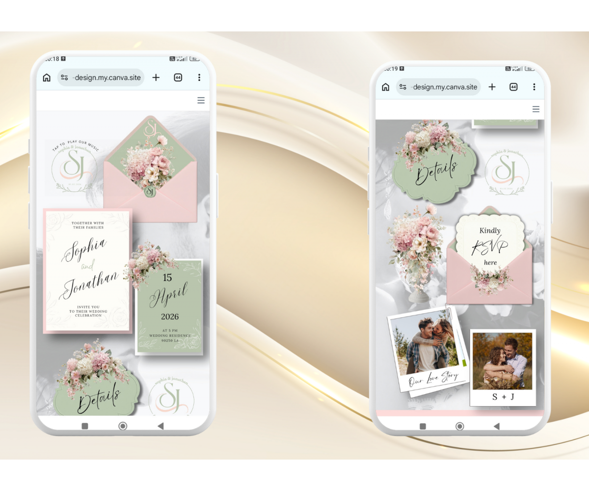 Tags: blush pink sage green wedding invitation website digital animated video website phone mobile