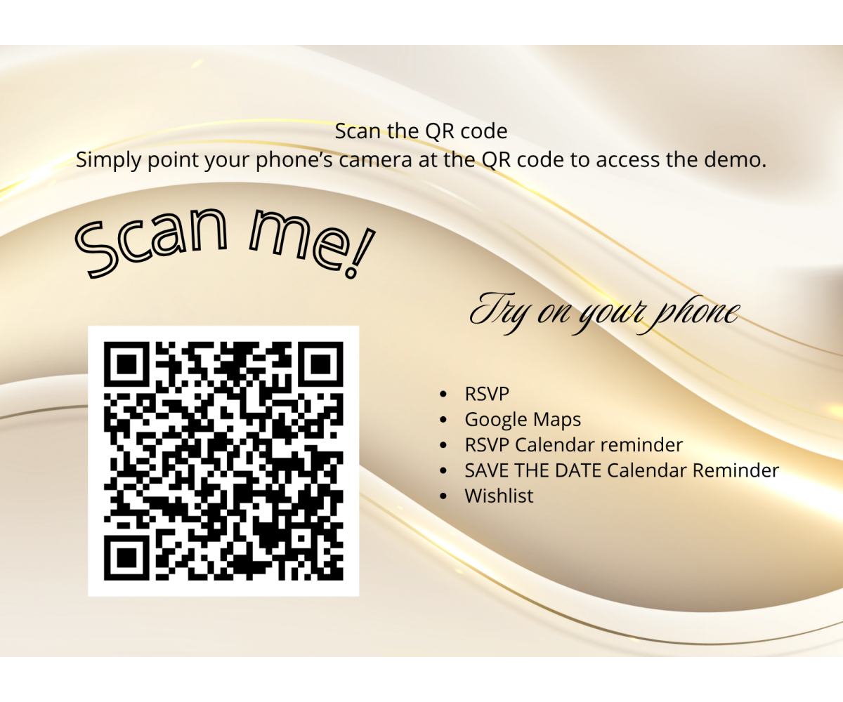 Text, color,QR code/links (RSVP, calendar, wishlist/registry, etc.)