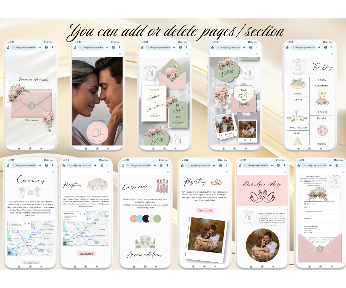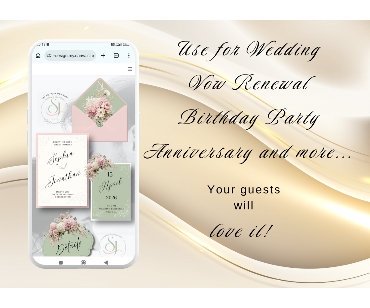 BLUSH PINK SAGE GREEN WEDDING / ANNIVERSARY / BIRTHDAY / VOW RENEWAL WEBSITE INVITATION