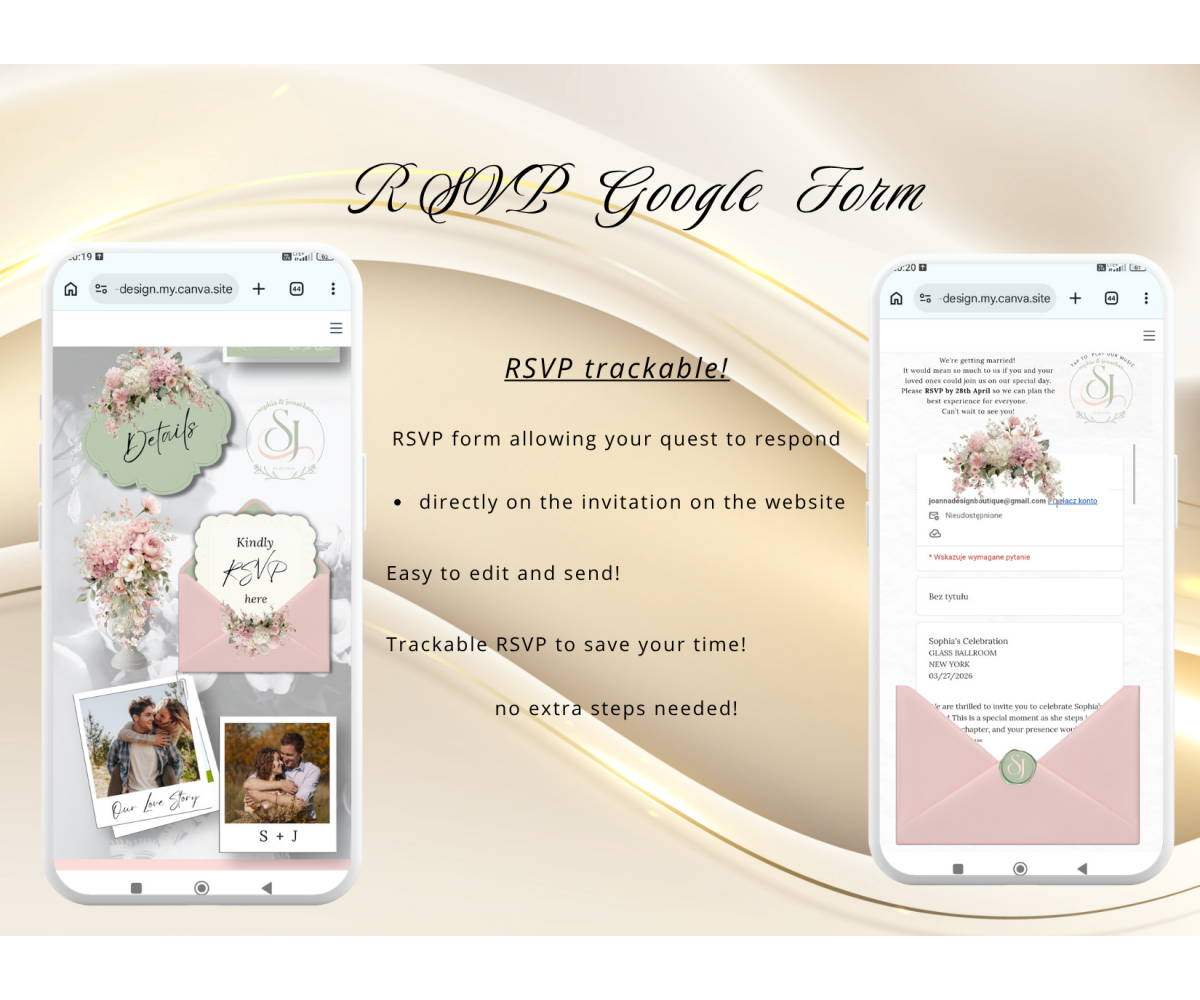 This video invitation is editing by you. Edit the design in Canva, update all details, and share your personalized event page with guests via link or QR code.